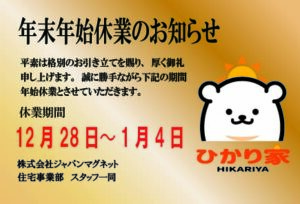 年末年始休業のお知らせ【富士見町・原村・茅野市・諏訪市・下諏訪町・岡谷市・塩尻市・松本市で新築ローコスト住宅をご検討の方へ】