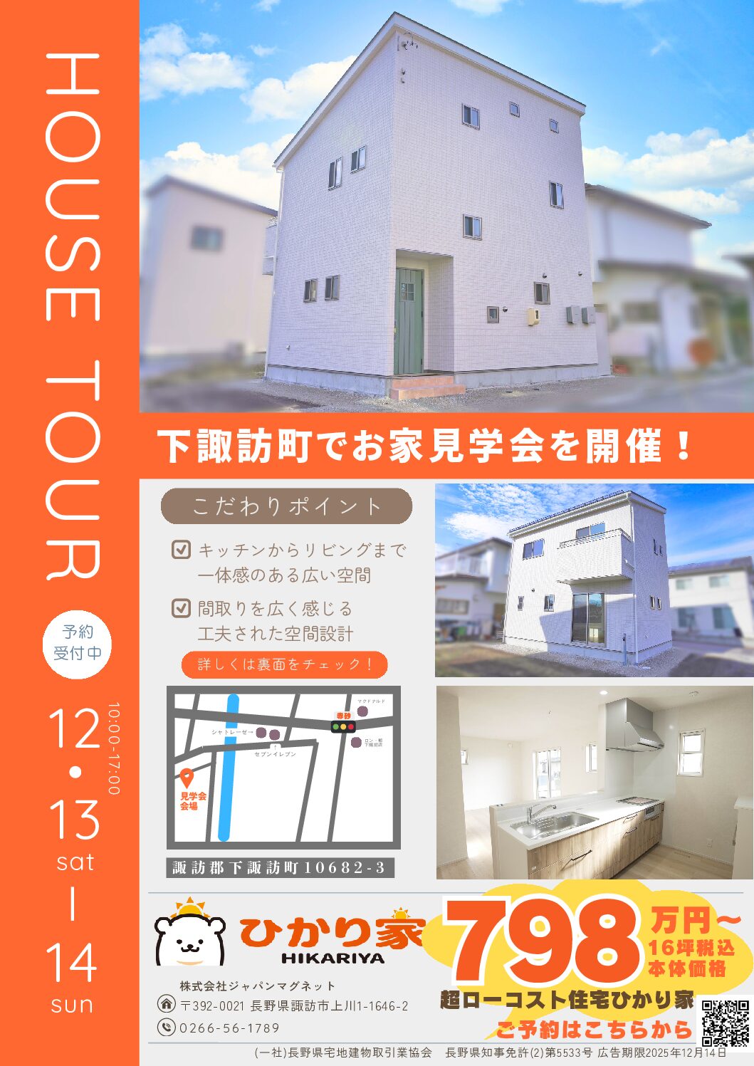 12月の師走!下諏訪町でお家見学会を開催することが決まりましたので、ご報告いたします!!